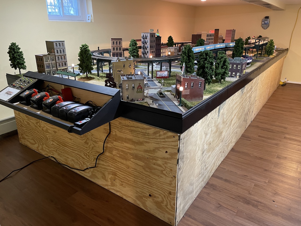 This client wanted a multi-level layout to entertain his wife, friends, and grandchildren, features double track, 4 continuous loops with an HO scale train on the top level!