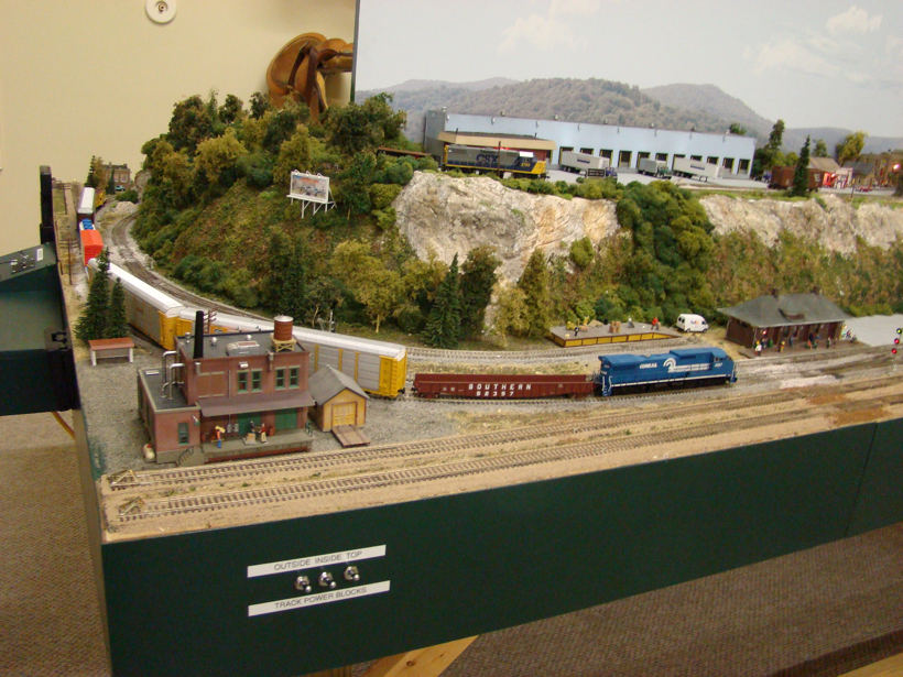 This client wanted a fun layout to operate with his son. HO scale railroad features 3 trains operating on 3 separate loops.